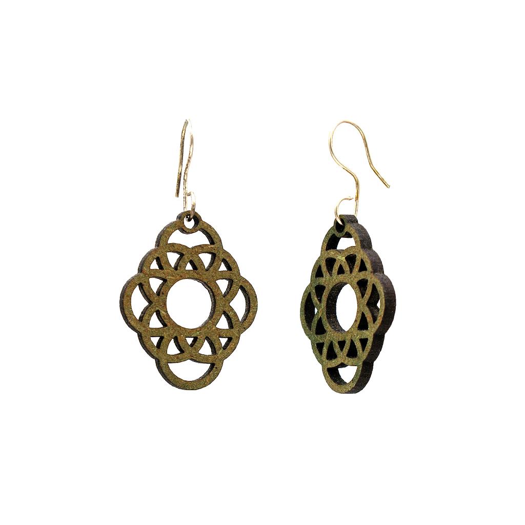 Concernant les boucles d'oreilles, comme nous utilisons à la fois des matériaux de récupération (dont les caractéristiques varient) et des teintures naturelles, chaque série réalisée possède une teinte unique, qui n’est pas toujours identique à celle des photos.
